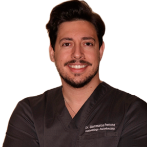 El Dr. Giammarco Perrone combina una práctica clínica de alta especialización — recubrimiento radicular, periodoncia e implantología— con docencia de posgrado e investigación clínica. Su enfoque integra planificación digital 3D y técnicas mínimamente invasivas para resultados predecibles y estéticos.