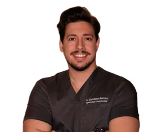 El Dr. Giammarco Perrone combina una práctica clínica de alta especialización — es referente en Madrid en Recubrimiento de encías, Periodoncia e Implantes Dentales— con docencia de posgrado e investigación clínica ya que es Doctorando en Periodoncia por la Universidad Complutense de Madrid.